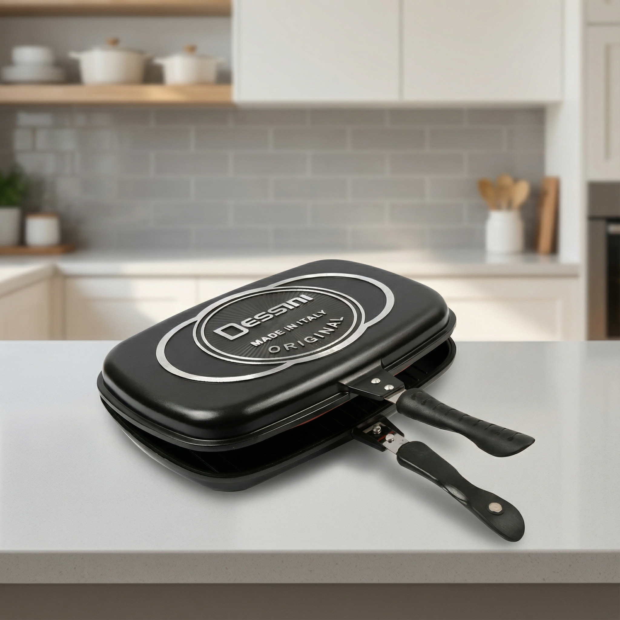 Sella el sabor, conserva los jugos y cocina sin humo ni exceso de aceite. La sartén doble Dessini cocina por ambos lados al mismo tiempo, logrando carnes jugosas, verduras perfectas y sándwiches dorados, con menos grasa y menos limpieza. Resultados de parrilla profesional, directamente en tu cocina.
